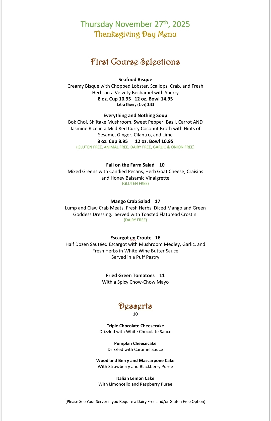 Thanksgiving Day Hours